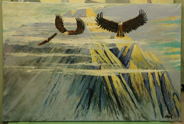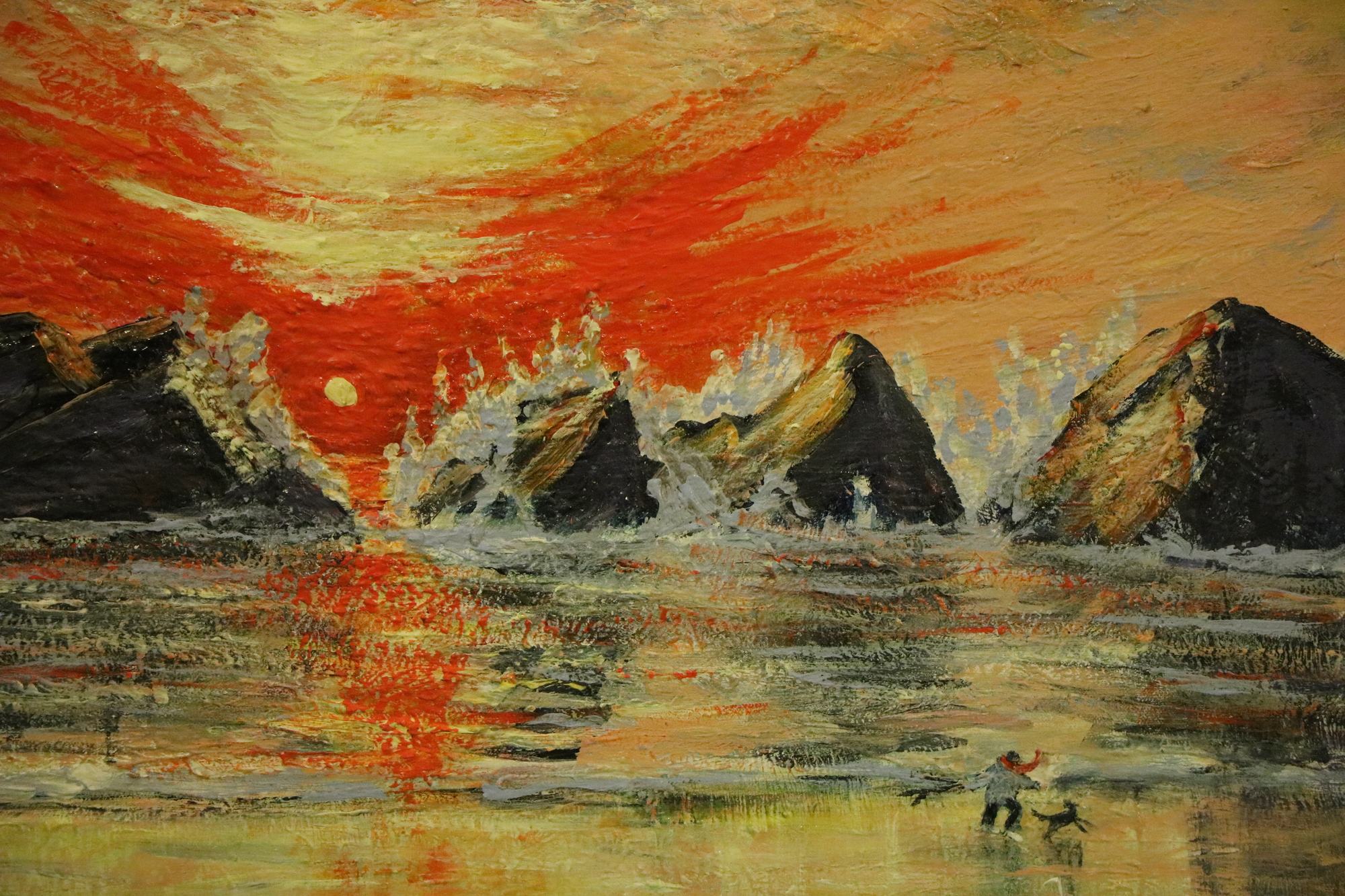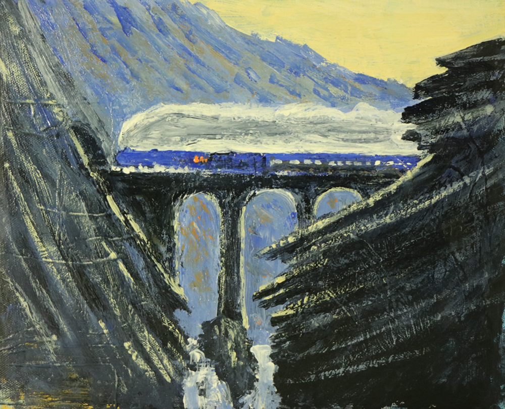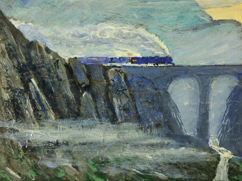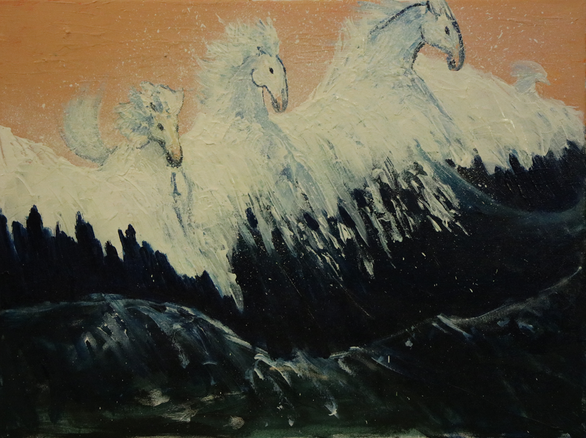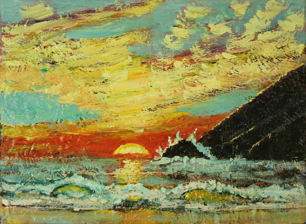 A day on the river, a tribute to Monet is executed in acrylics on ply/hardboard.