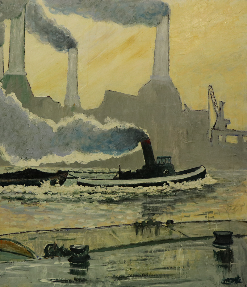 A day on the river, a tribute to Monet is executed in acrylics on ply/hardboard.